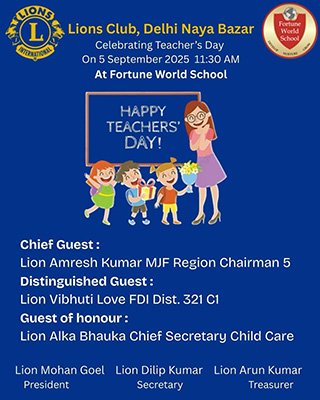 As part of Teachers’ Day celebrations, Fortune World School, Noida hosted a warm and respectful programme honouring it... As part of Teachers’ Day celebrations, Fortune World School, Noida hosted a warm and respectful programme honouring its dedicated educators. Teachers were felicitated with awards in recognition of their commitment and contribution to shaping young minds, followed by a cordial lunch shared with the teaching staff. The event was graced by **Chief Guest Lion Amresh Kumar, MJF, Region Chairman**, along with **Distinguished Guest Lion Vibhuti Love, PDG, and Guest of Honour Lion Alka Bhauka, Chief Secretary – Child Care. The celebration reflected gratitude, appreciation, and the school’s deep respect for the teaching fraternity. Read More